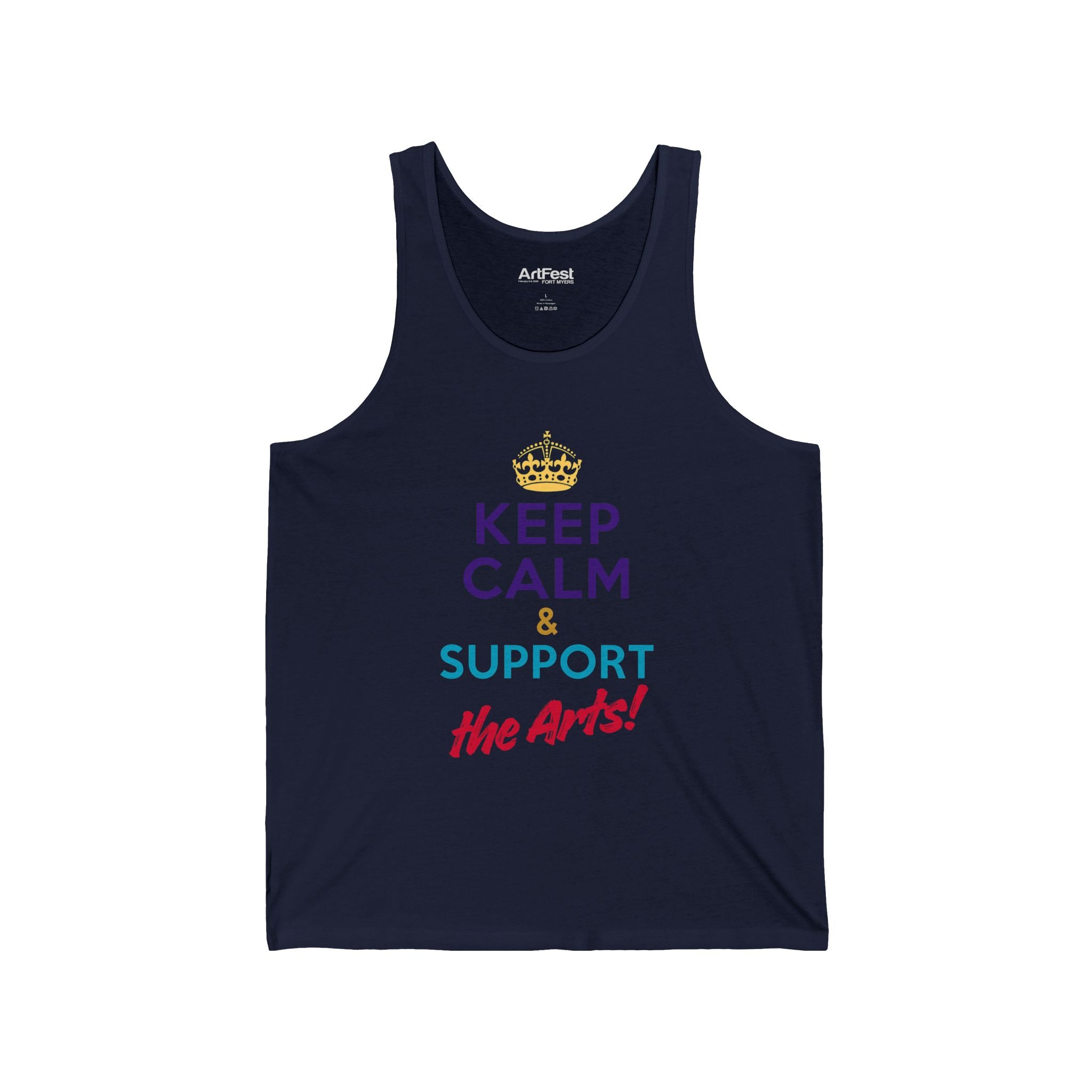This tank is designed to support the arts community and can be worn by anyone looking to make a statement. It is perfect for artists, art enthusiasts, and those who appreciate creativity. Ideal for art events, art festivals, and volunteer work in the arts.
